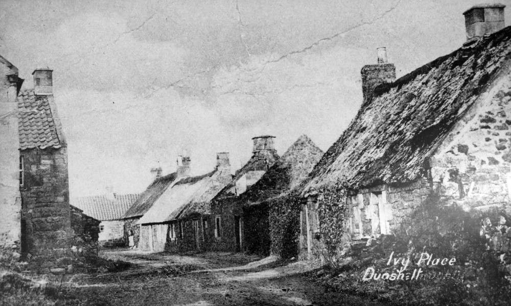 By 1895 the Valuation Roll records only 2 remaining small weavers, seven shops and the ever present Duncan’s Blacksmith. By 1905 the linen mill had been taken over by the much larger Erskine Beveridge & Co Ltd, Dunfermline, and areas of the village (Ivy Place photo, above) were already in serious decline.